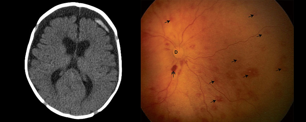 L’association d’un hématome sous-dural aigu et d’hémorragies rétiniennes au fond d’œil chez un nourrisson pour lequel aucun traumatisme compatible n’est retrouvé définit le traumatisme crânien non accidentel.