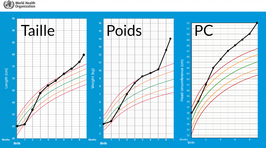 Très rapidement, et depuis son deuxième mois, il a une croissance hors-norme. J'en fais part au médecin qui met cela sur le compte d'un gros et grand bébé. Il avait néanmoins le périmètre crânien d'un enfant de 4 ou 5 ans, à seulement l'âge de 8 mois, la taille d'un enfant de 2 ans, et le poids d'un enfant de 3 ans. J'insistais auprès du médecin concernant ses courbes, mais il se voulait rassurant. d'autant plus qu'il n'avait jamais été malade.